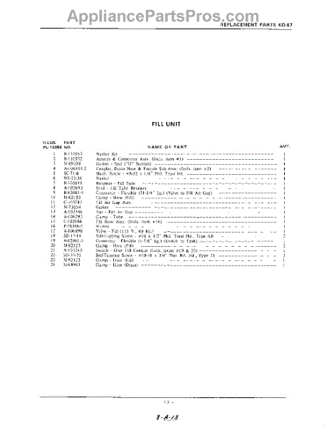 Parts for Kitchenaid KDD67: 13 - Section Parts