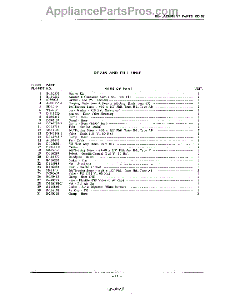 Parts for Kitchenaid KDD68: 13 - Section Parts