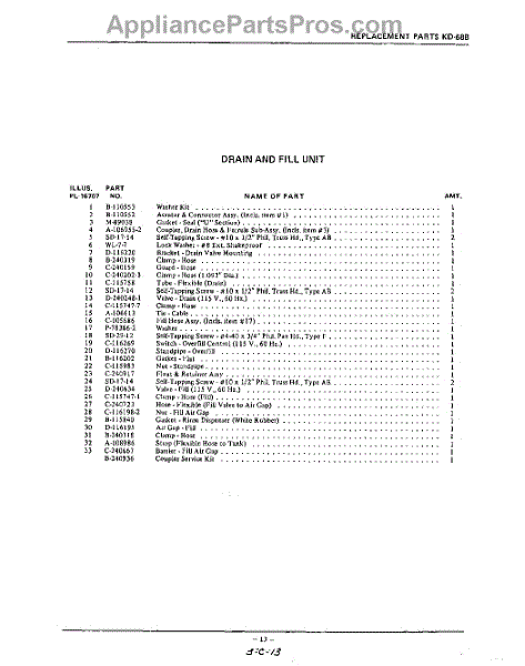Parts for Kitchenaid KDD68B: 13 - Section Parts