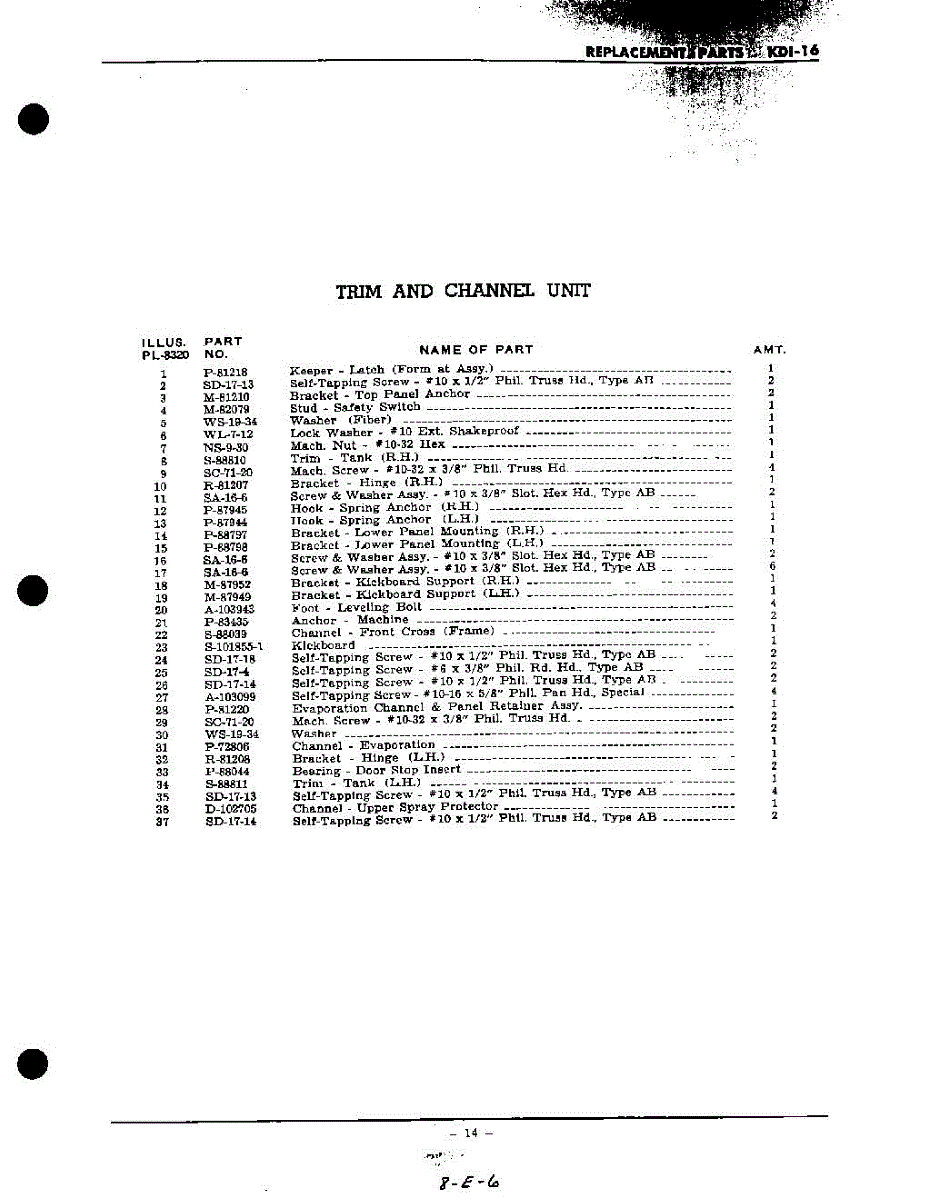 Parts for Kitchenaid KDI16WSC: 14 - Section Parts