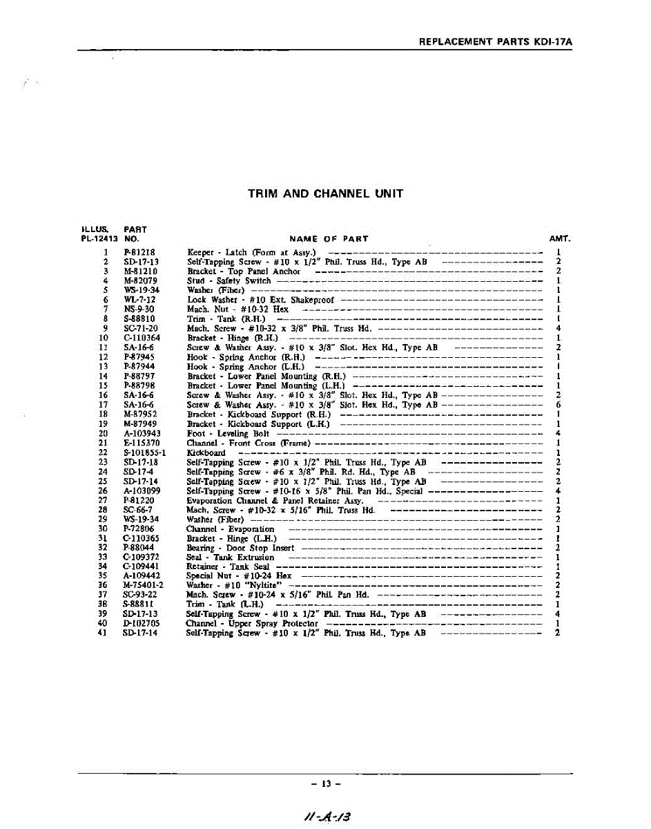 Parts for Kitchenaid KDI17A: 13 - Section Parts