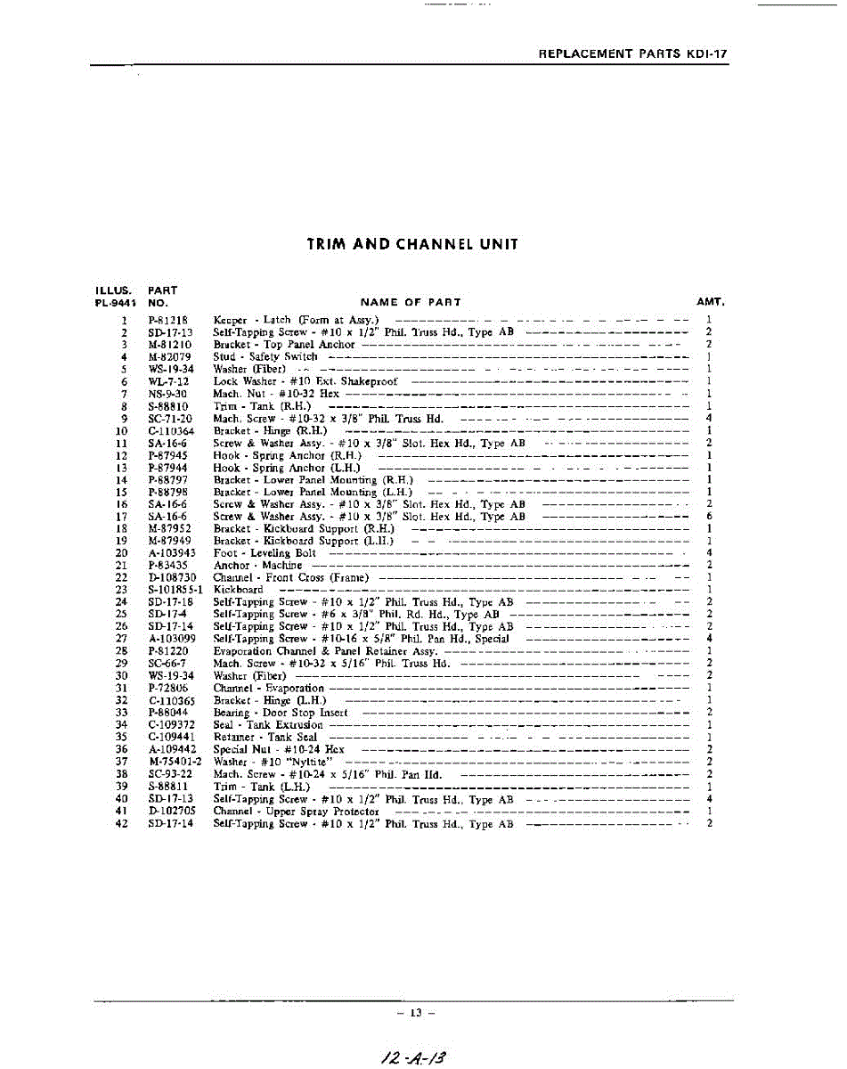 Parts for Kitchenaid KDI57: 13 - Section Parts