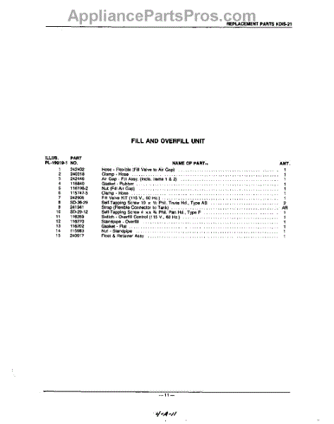 Parts for Kitchenaid KDIS21: 11 - Section Parts