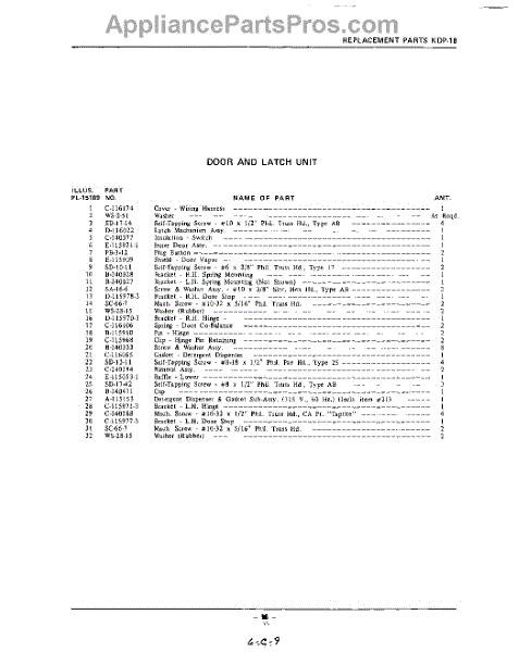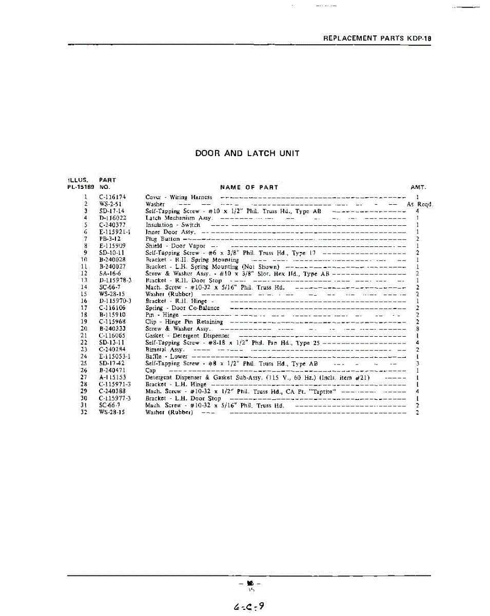 Parts for Kitchenaid KDP18: 15 - Section Parts