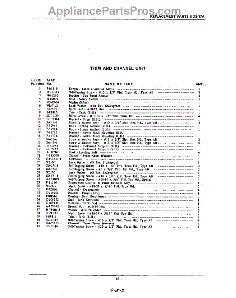 Parts for Kitchenaid KDS57A: 16 - Section Parts