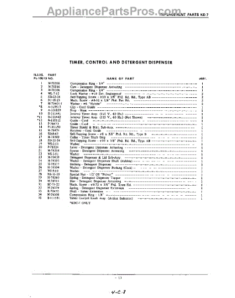 Parts for Kitchenaid KDW7: 13 - Section Parts