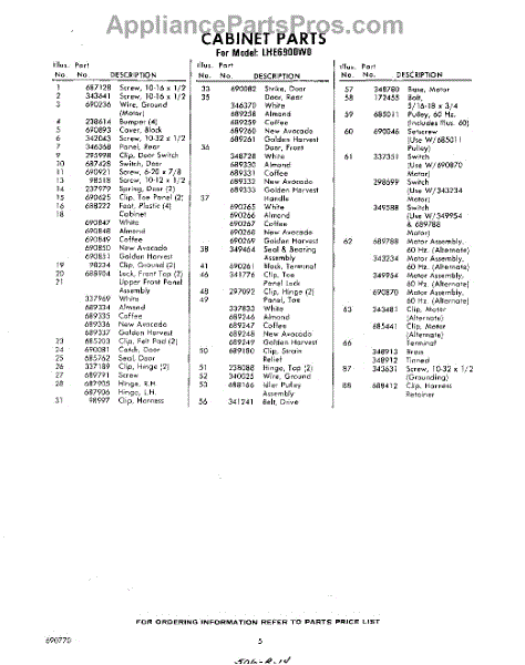 Parts for Whirlpool LHE6900W0: 05 - Section Parts