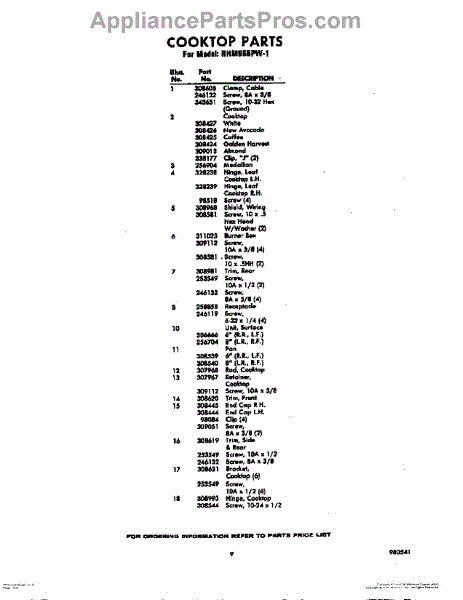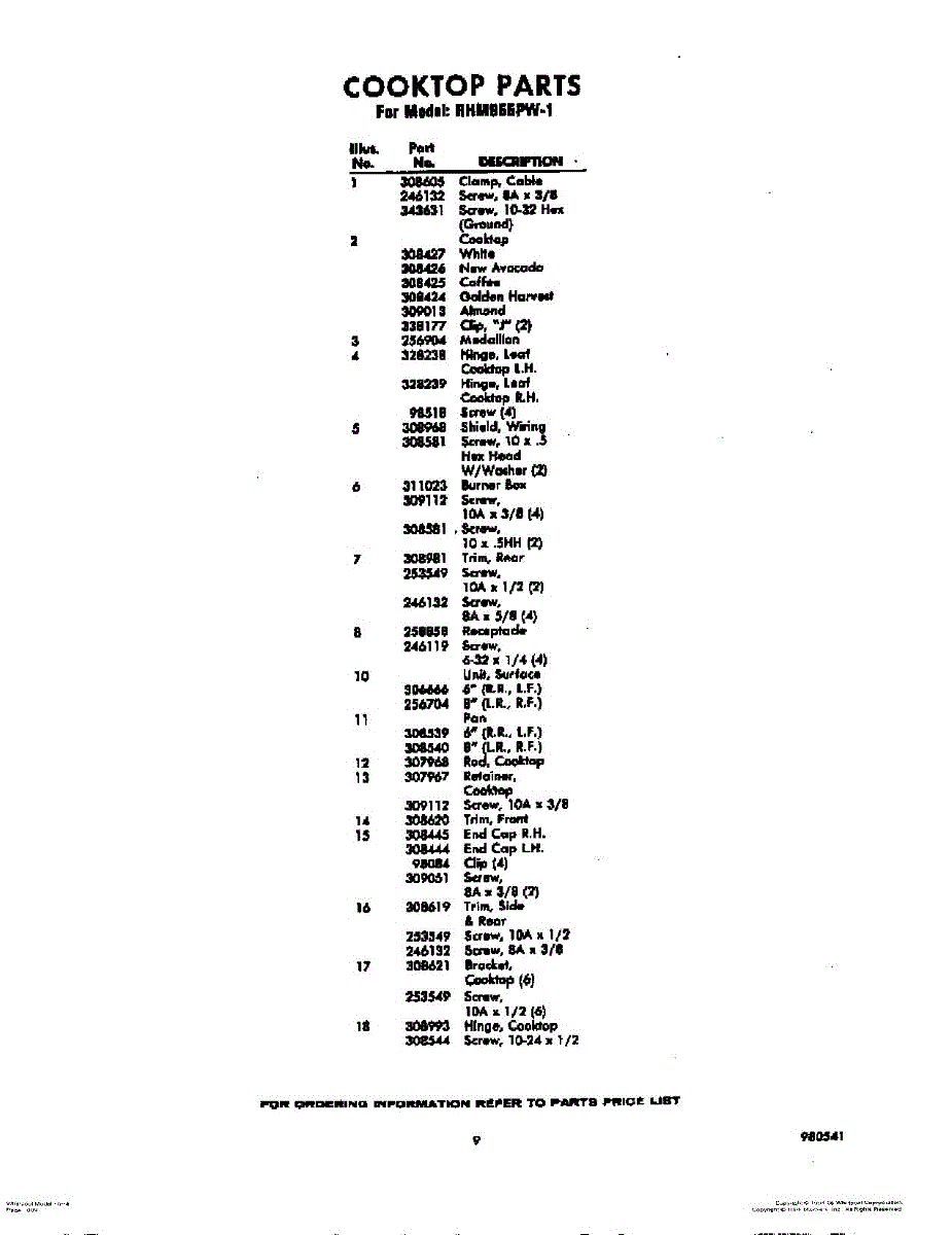Parts for Whirlpool RHM955PW1: 09 - Section Parts