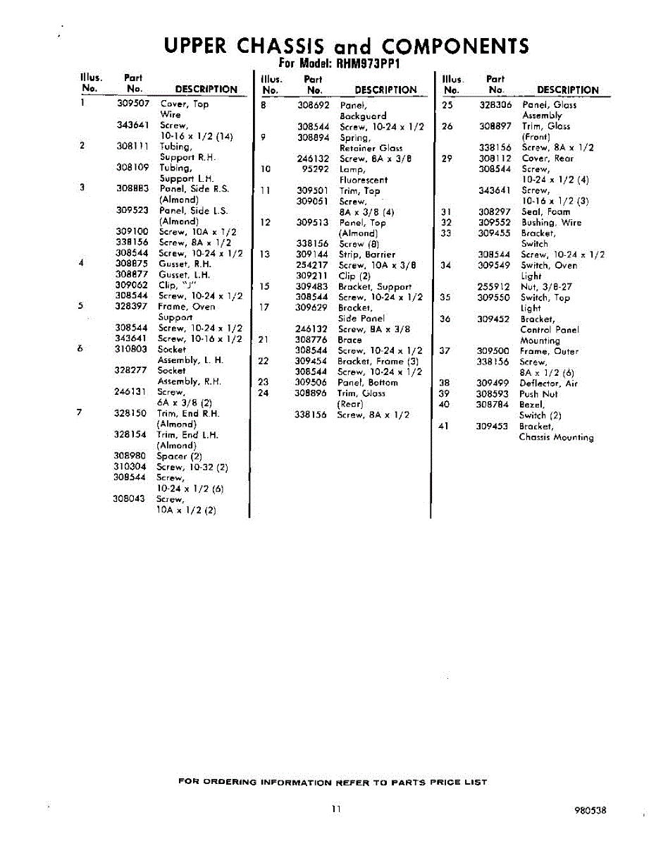 Parts for Whirlpool RHM973PP1: 11 - Section Parts