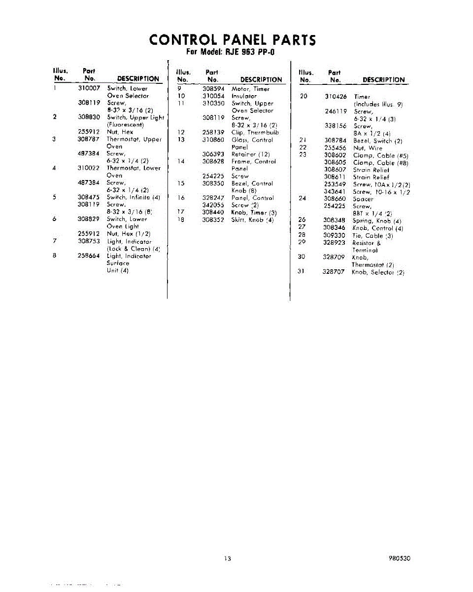 Parts for Whirlpool RJE963PP0: 13 - Section Parts