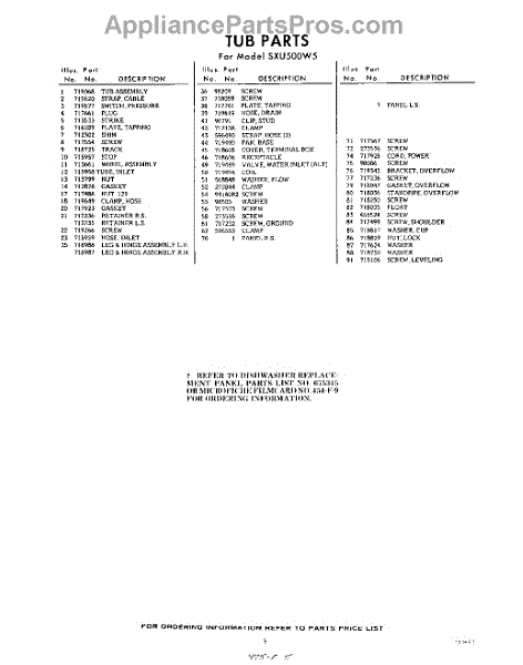 Parts for Whirlpool SXU500W5: 05 - Section Parts