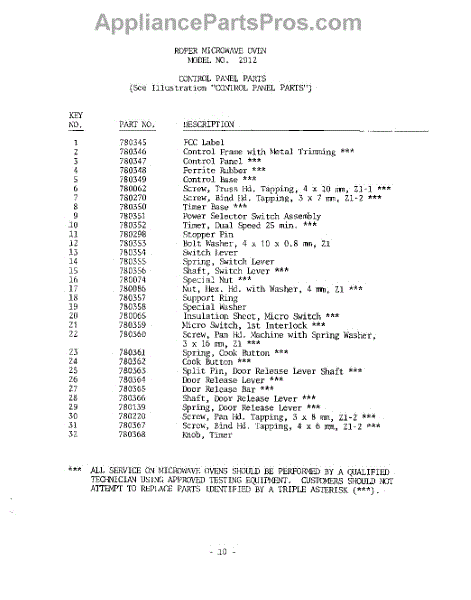 Whirlpool Microwave Parts
