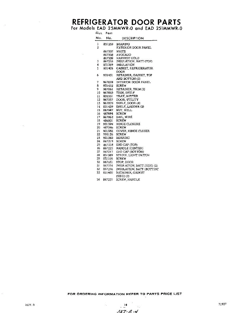 Parts for Whirlpool EAD251MMWR0: 18 - Section Parts