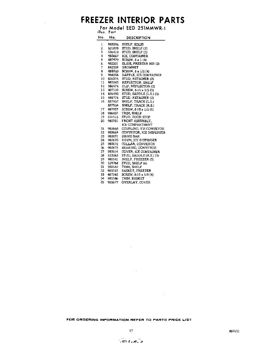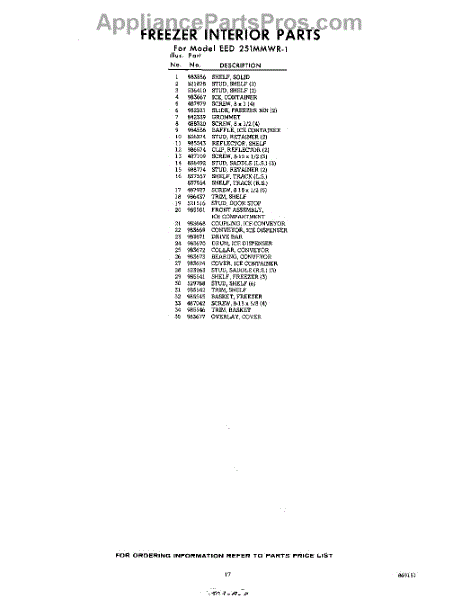 Parts for Whirlpool EED251MMWR1: 17 - Section Parts