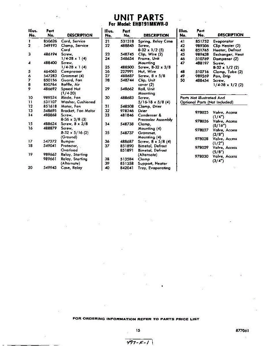 Parts for Whirlpool EHB191MKWR0: 15 - Section Parts