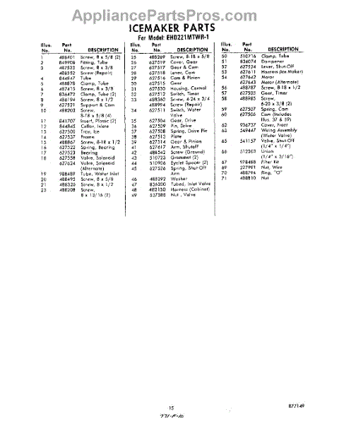 Parts for Whirlpool EHD221MTWR1: 15 - Section Parts