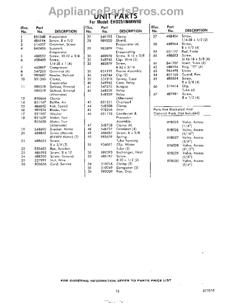 Parts for Whirlpool EHD251MMWR0: 15 - Section Parts