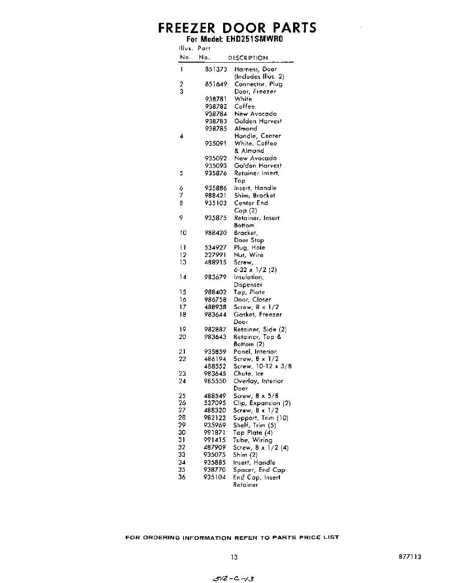 Parts for Whirlpool EHD251SMWR0: 13 - Section Parts