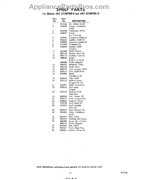 Parts for Whirlpool EHT221MTWR0: 17 - Section Parts
