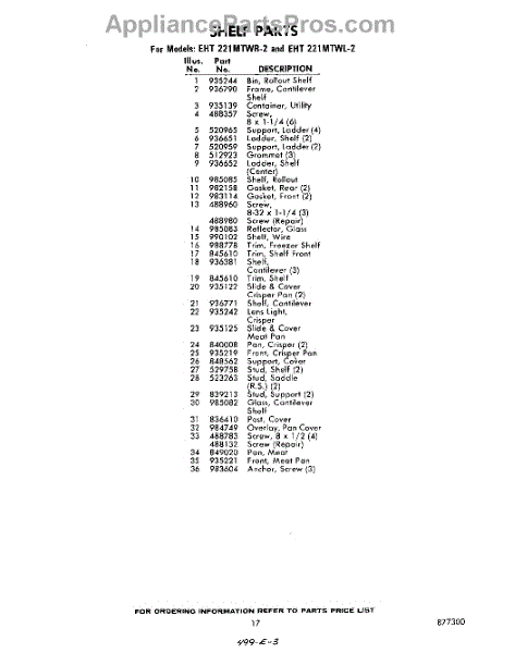 Parts for Whirlpool EHT221MTWR2: 17 - Section Parts