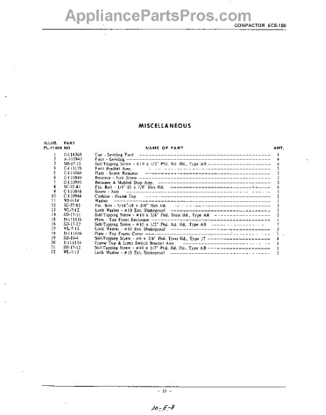 Parts for Kitchenaid KCS100: 15 - Section Parts