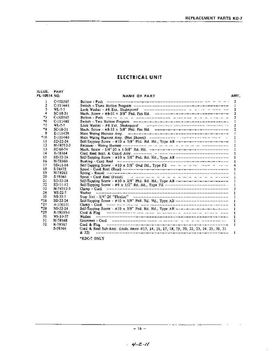 Parts for Kitchenaid KDC7: 16 - Section Parts