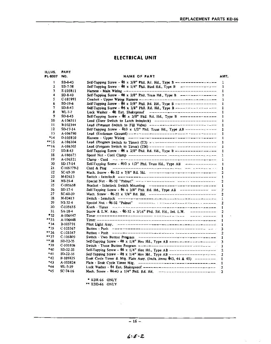 Parts for Kitchenaid KDD66: 16 - Section Parts