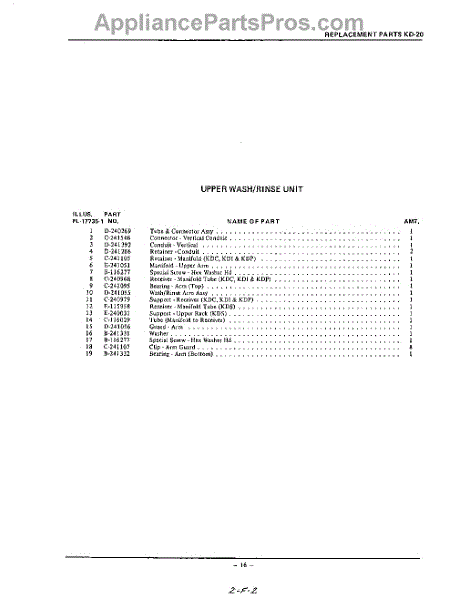 Parts for Kitchenaid KDI60: 16 - Section Parts