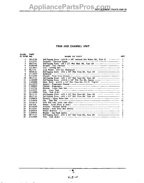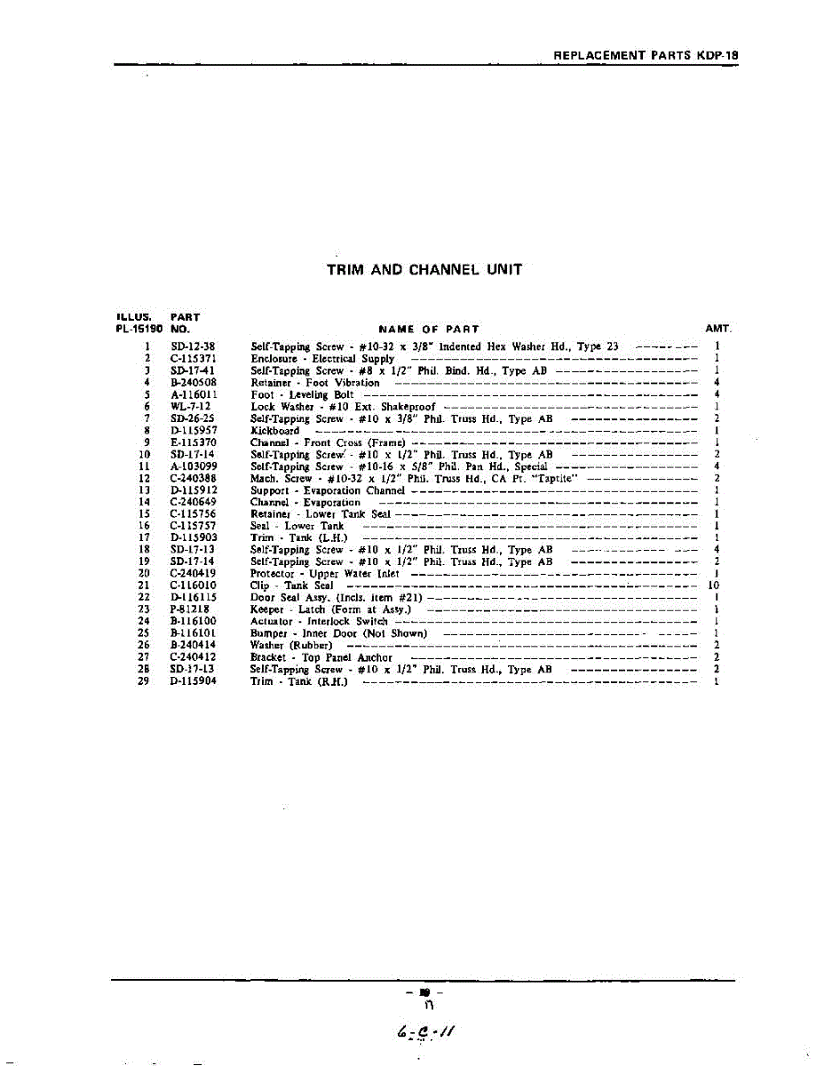 Parts for Kitchenaid KDP18: 17 - Section Parts