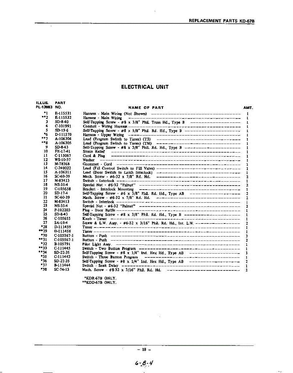 Parts for Kitchenaid KDR67B: 18 - Section Parts