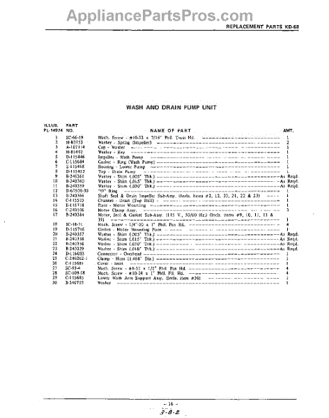 Parts for Kitchenaid KDR68: 16 - Section Parts