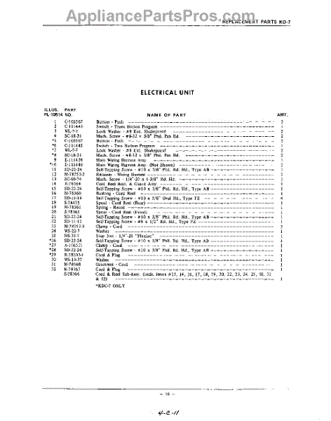 Parts for Kitchenaid KDW7: 16 - Section Parts