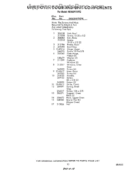 Parts for Whirlpool RE960PXVW2: 13 - Section Parts