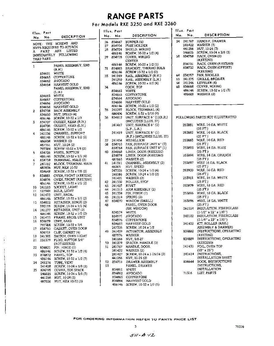 Parts for RYE36504