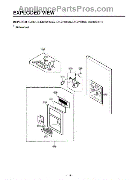 The Ice Chute Door is an OEM part for LG refrigerators. It is located in the ice dispenser area on the front of the refrigerator. It opens and closes automatically when ice is dispensed, ensuring a controlled release of ice cubes or crushed ice into the user's glass or container. The door helps to prevent frost buildup, maintain proper insulation, and protect the ice inside the dispenser.
