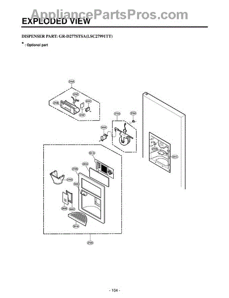 The Ice Chute Door is an OEM part for LG refrigerators. It is located in the ice dispenser area on the front of the refrigerator. It opens and closes automatically when ice is dispensed, ensuring a controlled release of ice cubes or crushed ice into the user's glass or container. The door helps to prevent frost buildup, maintain proper insulation, and protect the ice inside the dispenser.