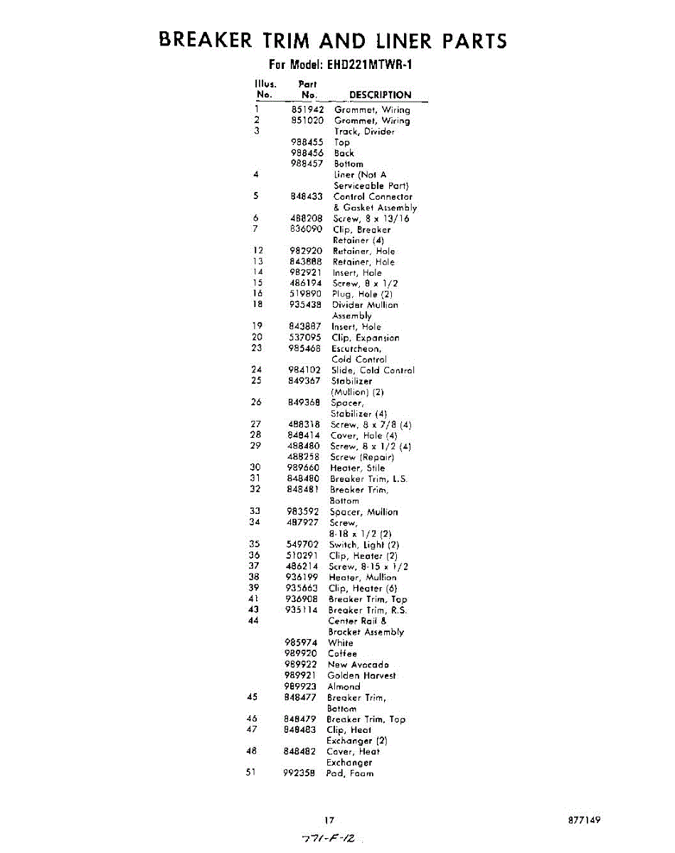 Parts for Whirlpool EHD221MTWR1: 17 - Section Parts