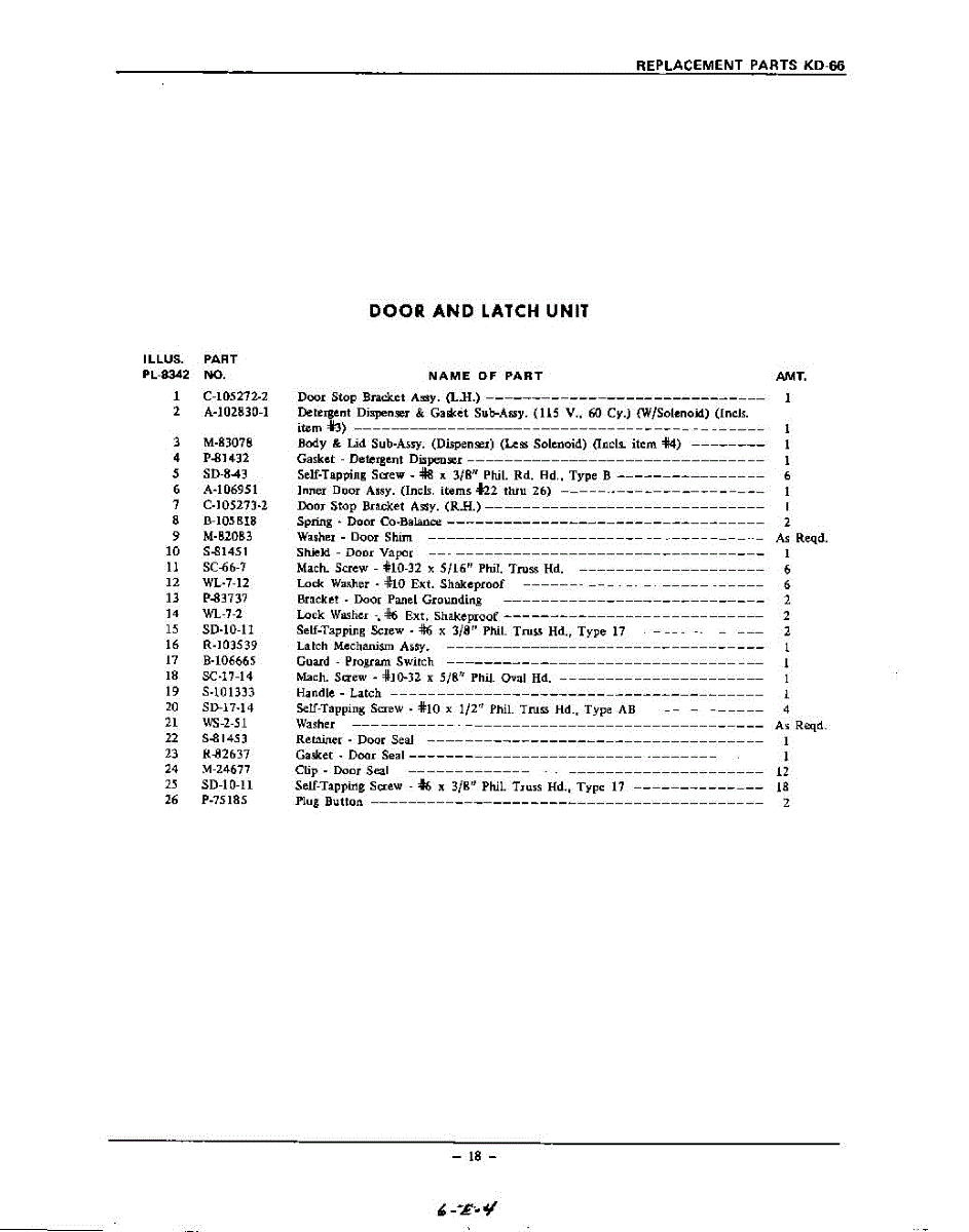 Parts for Kitchenaid KDD66: 18 - Section Parts