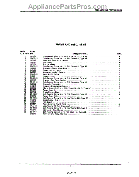 Parts for Kitchenaid KDIS21: 18 - Section Parts