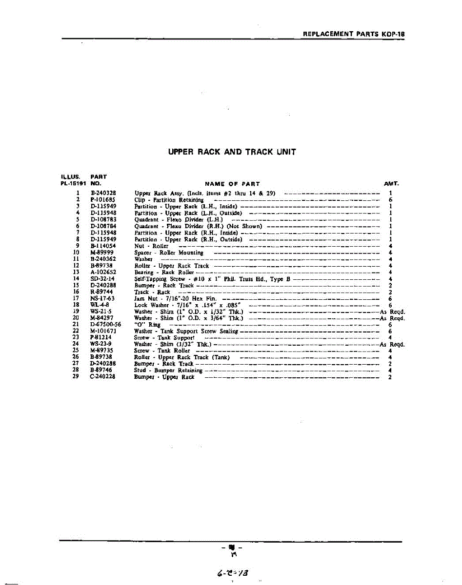 Parts for Kitchenaid KDP18: 19 - Section Parts