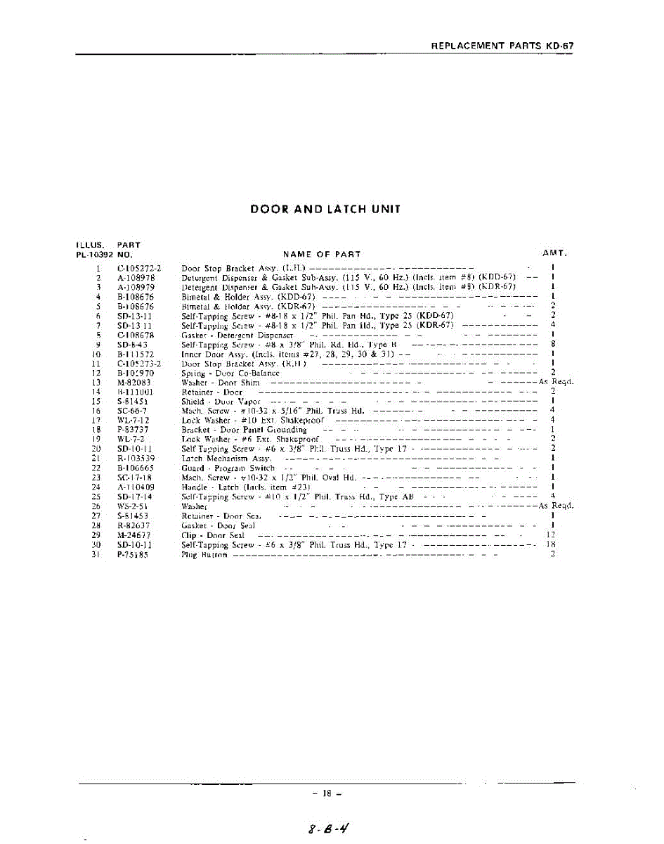 Parts for Kitchenaid KDR67: 18 - Section Parts