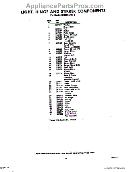 12 - Light, Hinge And Stirrer Components