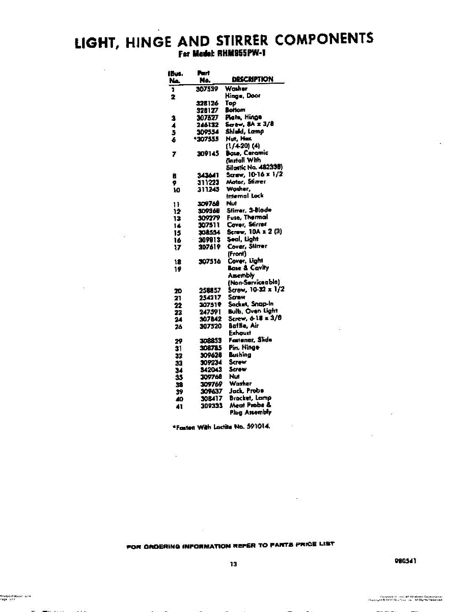 Parts for Whirlpool RHM955PW1: 13 - Section Parts