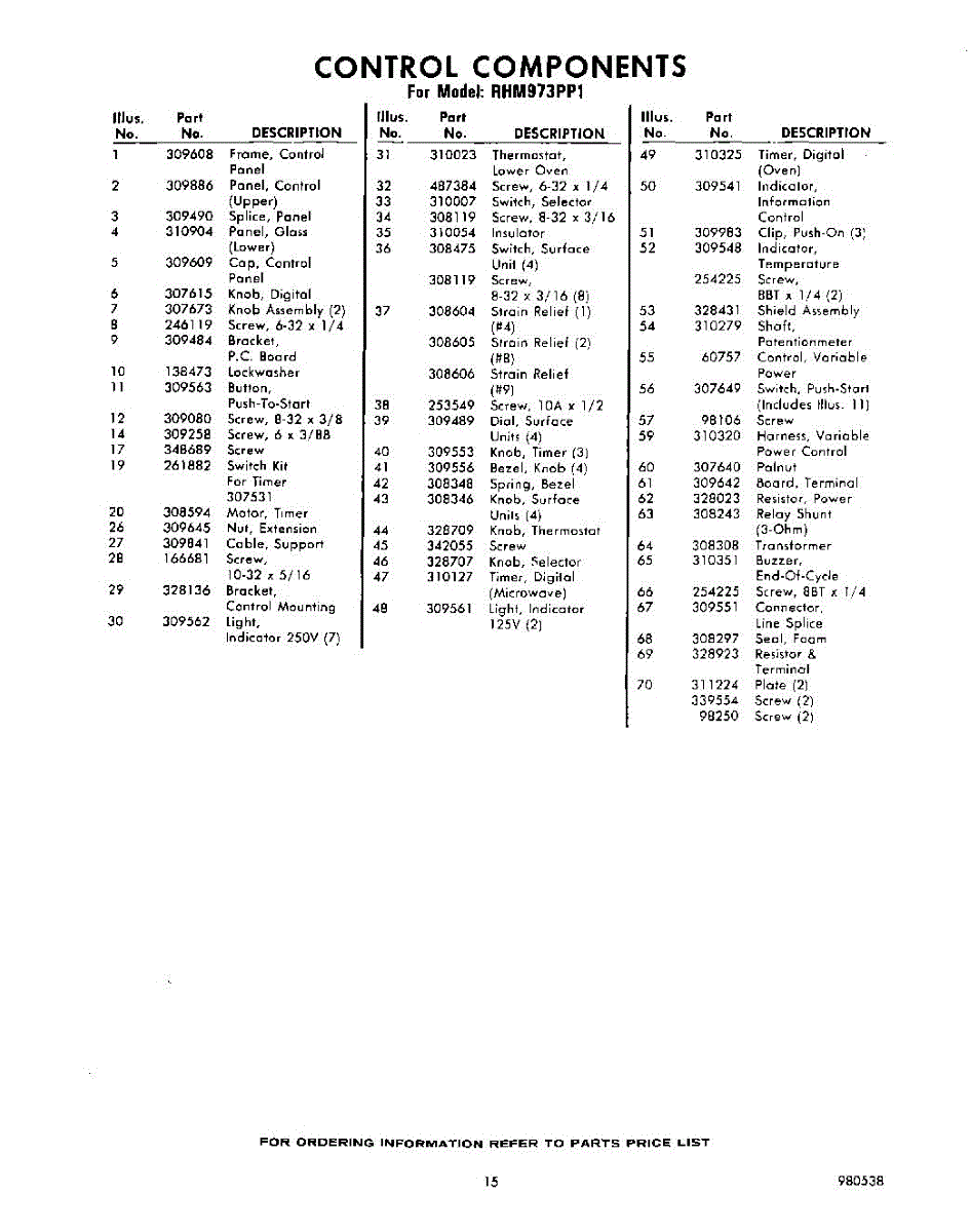 Parts for Whirlpool RHM973PP1: 15 - Section Parts