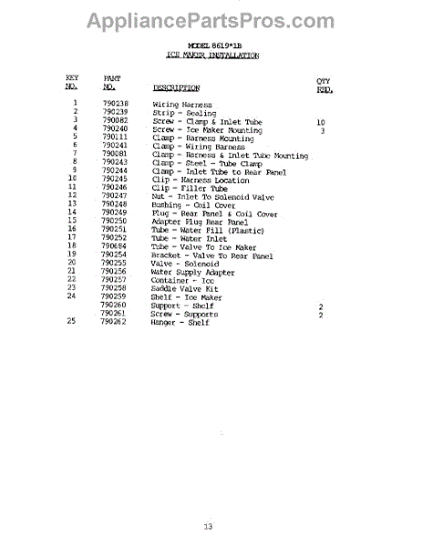 Parts for Whirlpool 8619W1B: 14 - Section Parts