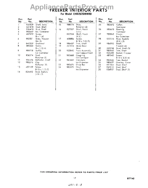 Parts for Whirlpool EHD252SMWR0: 17 - Section Parts