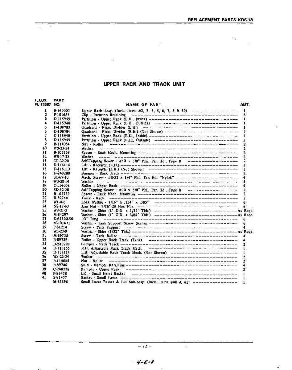 Parts for Kitchenaid KDS38: 22 - Section Parts