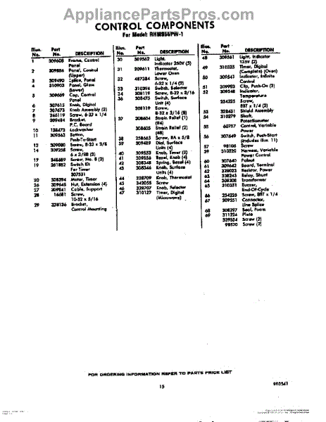 Parts for Whirlpool RHM955PW1: 15 - Section Parts