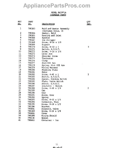 Parts for 8619W1A
