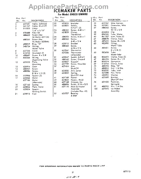 Parts for Whirlpool EHD251SMWR0: 21 - Section Parts